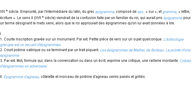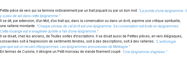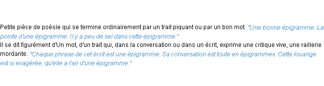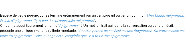Signification éditée en 1986 pour le terme « épigramme » par l’Académie Française.