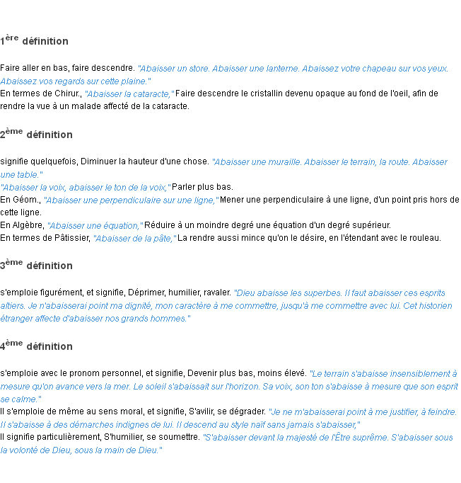 Ancienne définition de l’Académie Française (édition de 1835) pour le mot « abaisser ».