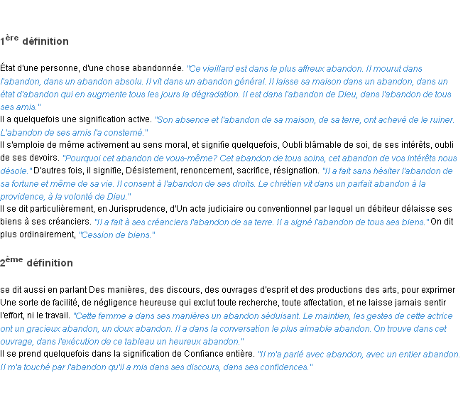 Définition de l’Académie Française (édition de 1986) pour le mot « abandon ».