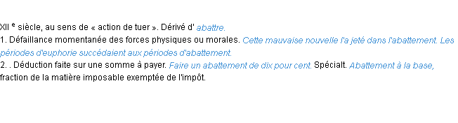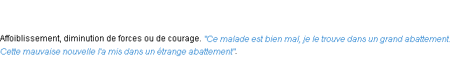 Ancienne signification parue en 1798 dans dictionnaire de l’Académie Française.Merci à Honorine et Lionel pour la numérisation du mot abattement.