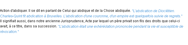 Signification du terme « abdication », parution de 1932, dictionnaire académique Français.
