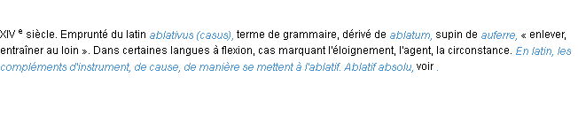 Signification éditée en 1986 pour le terme « ablatif » par l’Académie Française.