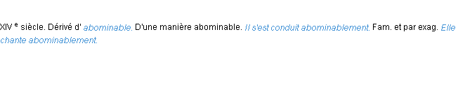 Signification du terme « abominablement », parution de 1986, dictionnaire académique Français.