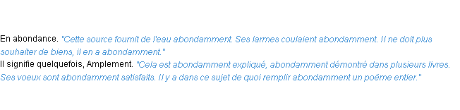Définition « abondamment » du dictionnaire académique Français, parution de l’année 1932.