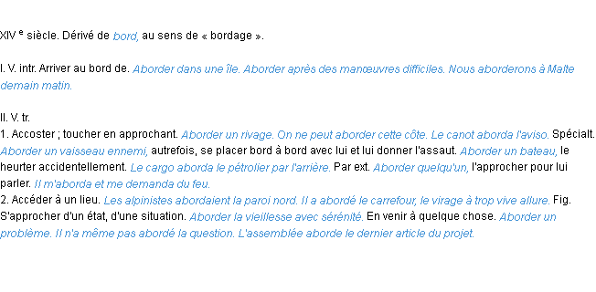 Signification éditée en 1932 pour le terme « aborder » par l’Académie Française.