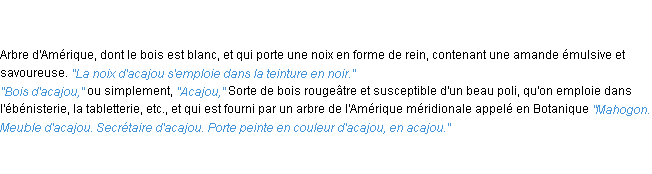 Signification du terme « acajou », parution de 1932, dictionnaire académique Français.