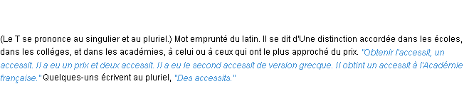 Signification du terme « accessit », parution de 1932, dictionnaire académique Français.