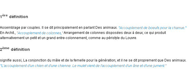 Définition académique pour le terme « accouplement » (parue en 1932).