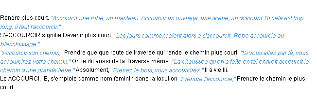 Signification du terme « accourcir », parution de 1986, dictionnaire académique Français.