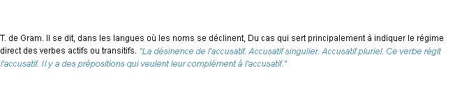 Ancienne définition académique pour le terme « accusatif » (parue en 1835).