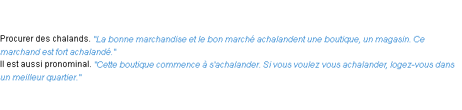 Signification éditée en 1986 pour le terme « achalander » par l’Académie Française.