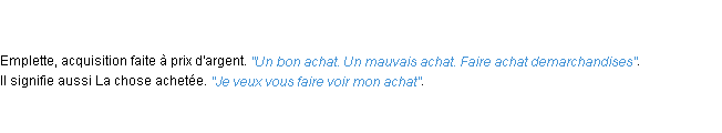 Définition de « achat » de source académique (Académie Française, parution de 1932).