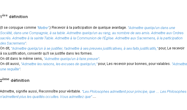 Définition du mot « admettre » par l’Académie Française (édition de 1932).