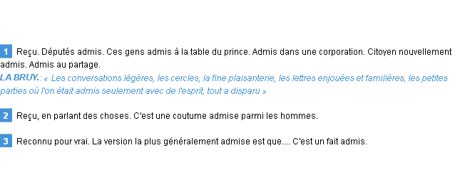 Synonymes les plus fréquemment utilisés pour le terme « admis ».