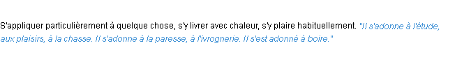 Signification éditée en 2010 par l’équipe de la-definition.fr.Merci à Valérie et édouard pour la numérisation du mot adonner.