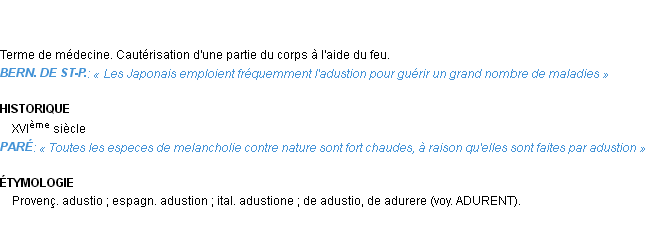 Signification éditée en 1876 pour le terme « adustion » par Emile Littré.