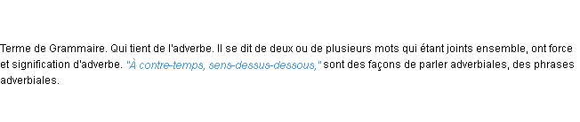 Ancienne signification éditée en 1835 pour le terme « adverbial » par l’Académie Française.