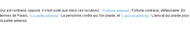 Définition de « adverse » de source académique (Académie Française, parution de 1932).