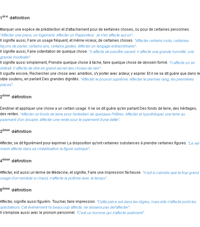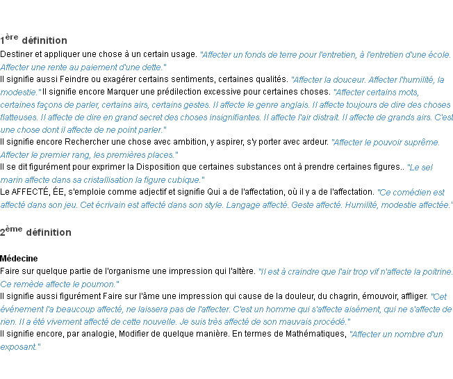 Définition du mot « affecter » par l’Académie Française (édition de 1932).