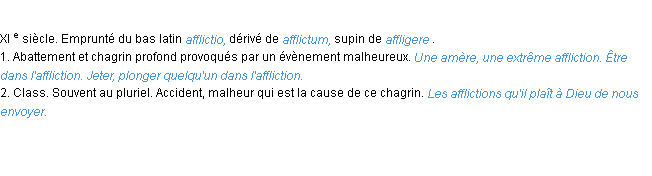 Définition académique pour le terme « affliction » (parue en 1932).