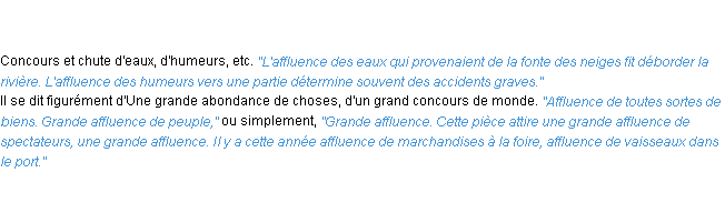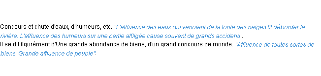 Ancienne définition académique pour le terme « affluence » (parue en 1835).