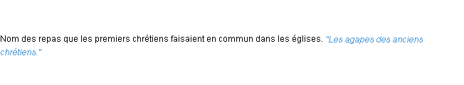 Signification développée en 1876 par Mr Littré (dictionnaire dit d’Emile Littré).Merci à Stéphane et Jolie pour la numérisation du mot agape.