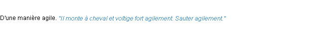 Ancienne définition de « agilement » de source académique (Académie Française, parution de 1835).