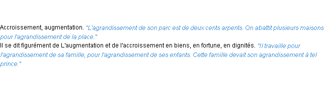 Ancienne définition académique pour le terme « agrandissement » (parue en 1835).