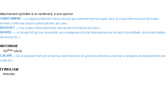 Signification éditée en 1932 pour le terme « aheurtement » par l’Académie Française.