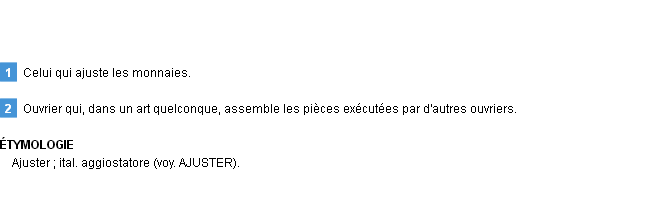 Définition du mot « ajusteur » par l’Académie Française (édition de 1986).