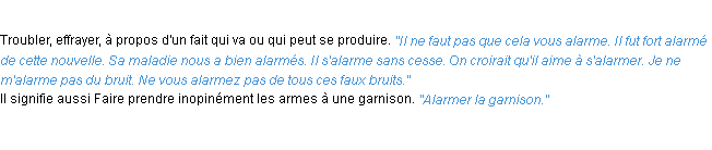 Signification éditée en 1986 pour le terme « alarmer » par l’Académie Française.