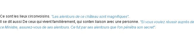 Définition du mot « alentours » par l’équipe de la-definition.fr (édition de 2011).