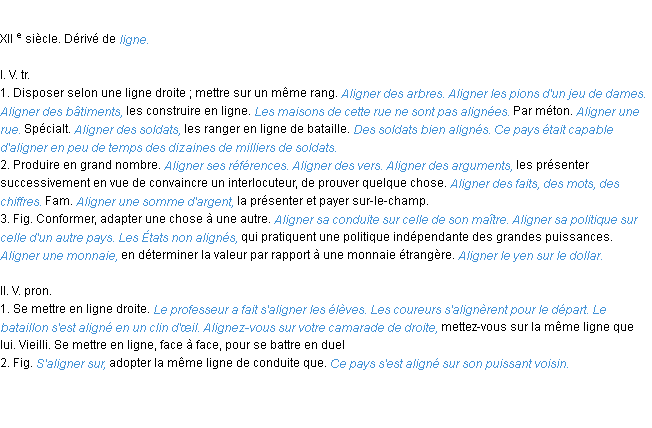Quelques citations et utilisation du mot aligner dans la littérature et les publications journalistiques :