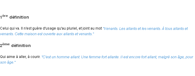 Ancienne définition de l’Académie Française (édition de 1835) pour le mot « allant ».