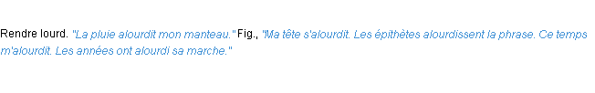 Ancienne définition académique pour le terme « alourdir » (parue en 1835).