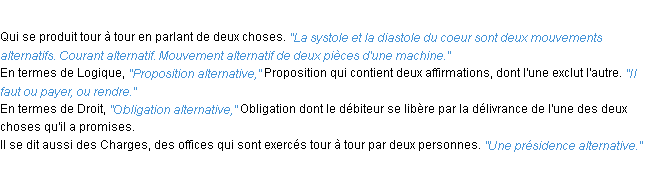 Ancienne définition académique pour le terme « alternatif » (parue en 1835).