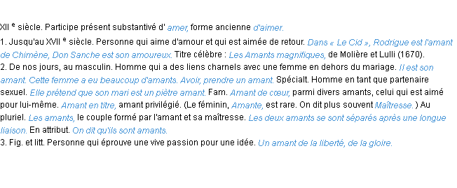Usage du mot: amant