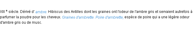 Définition de « ambrette » de source académique (Académie Française, parution de 1932).
