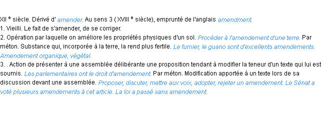 Définition académique pour le terme « amendement » (parue en 1986).