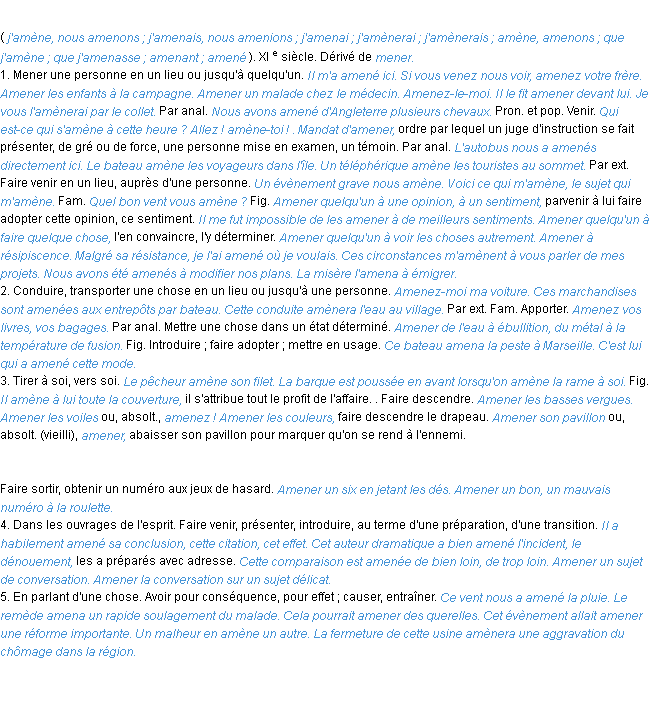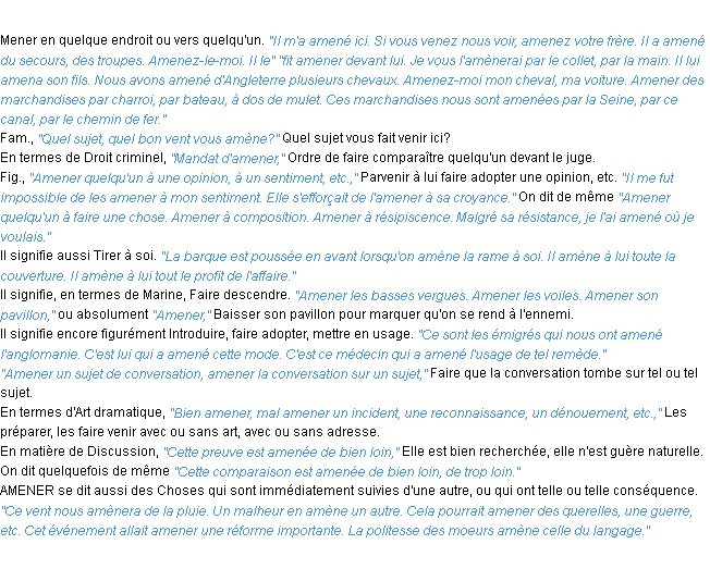 Signification éditée en 1986 pour le terme « amener » par l’Académie Française.