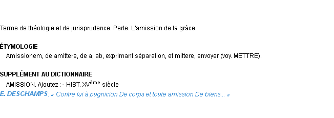Signification éditée en 1876 pour le terme « amission » par Emile Littré.