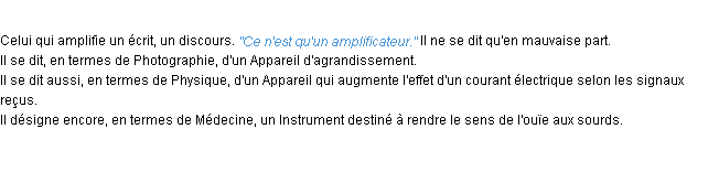 Ancienne signification éditée en 1835 pour le terme « amplificateur » par l’Académie Française.