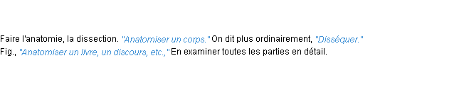Ancienne signification développée en 1798 par l’académie Française (ACAD - 1798).Merci à Nathalie et Aude pour la numérisation du mot anatomiser.