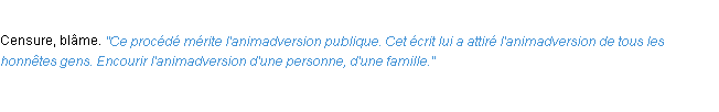 Ancienne signification du terme « animadversion », parution de 1835, dictionnaire académique Français.