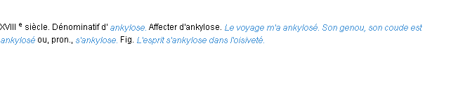 Signification du terme « ankyloser », parution de 1986, dictionnaire académique Français.
