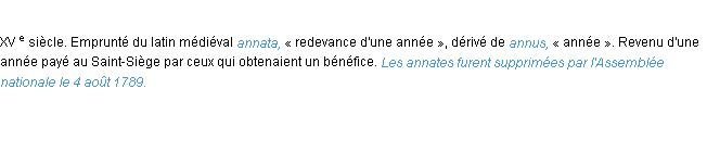 Ancienne définition de « annate » de source académique (Académie Française, parution de 1835).
