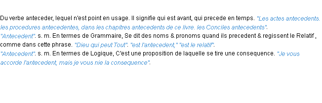 Ancienne définition de l’Académie Française (édition de 1798) pour le mot « antecedent ».