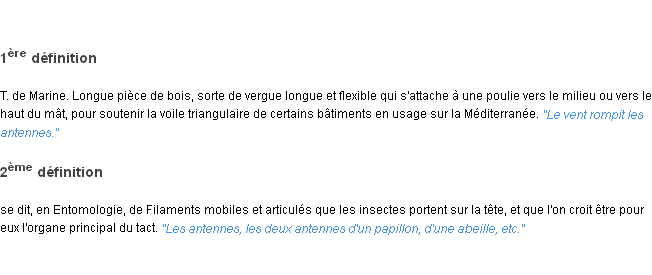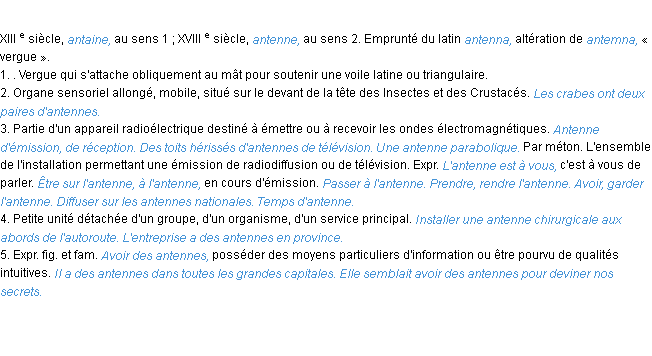 Ancienne signification éditée en 1835 pour le terme « antenne » par l’Académie Française.