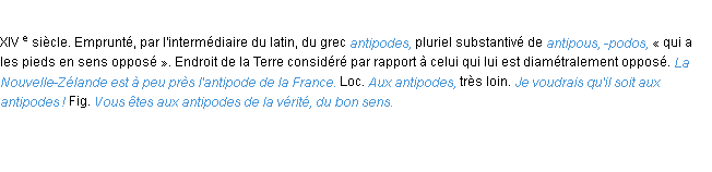 Signification éditée en 1986 pour le terme « antipode » par l’Académie Française.