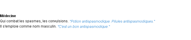 Signification du terme « antispasmodique », parution de 1932, dictionnaire académique Français.